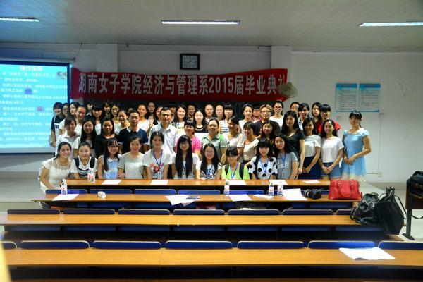 2015年6月14日晚19点,湖南女子学院经济与管理系在笃行楼201教室举行了2015届毕业典礼,经济与管理系党总支书记林运清、副主任董展眉、副主任朱元双和教研室主任、辅导员等共15名老以及2015届毕业生参加了典礼。
