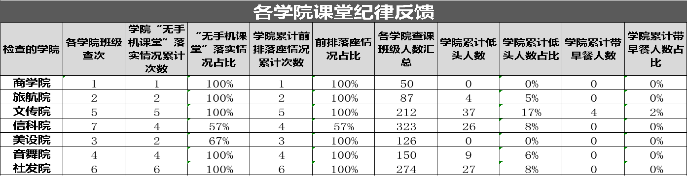 各班级应当高度聚焦文明督查工作。对检查中发现的问题,快速进行纠正,共同打造女院的优良学风!