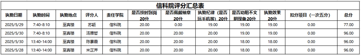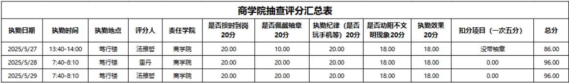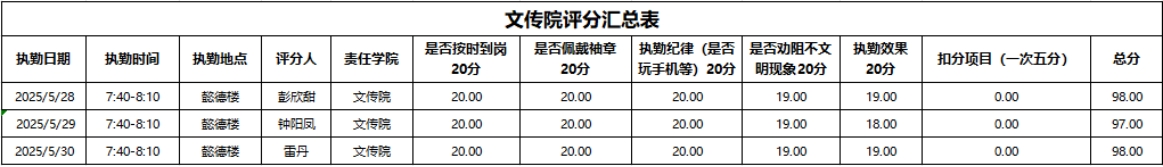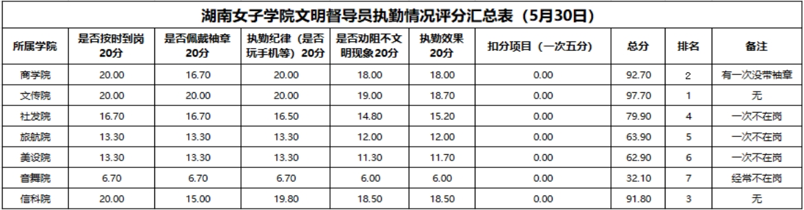 为进一步强化学风建设,引导学生培养正确的学习习惯,切实提升学生的学习积极性,全力构建积极向上的学习氛围与文明有序的校园环境。在学工部的统筹部署下,2025年5月26日至2025年5月30日,大学生自我管理委员会开展了校园文明督查,学风建设督查。现将相关情况通报如下: