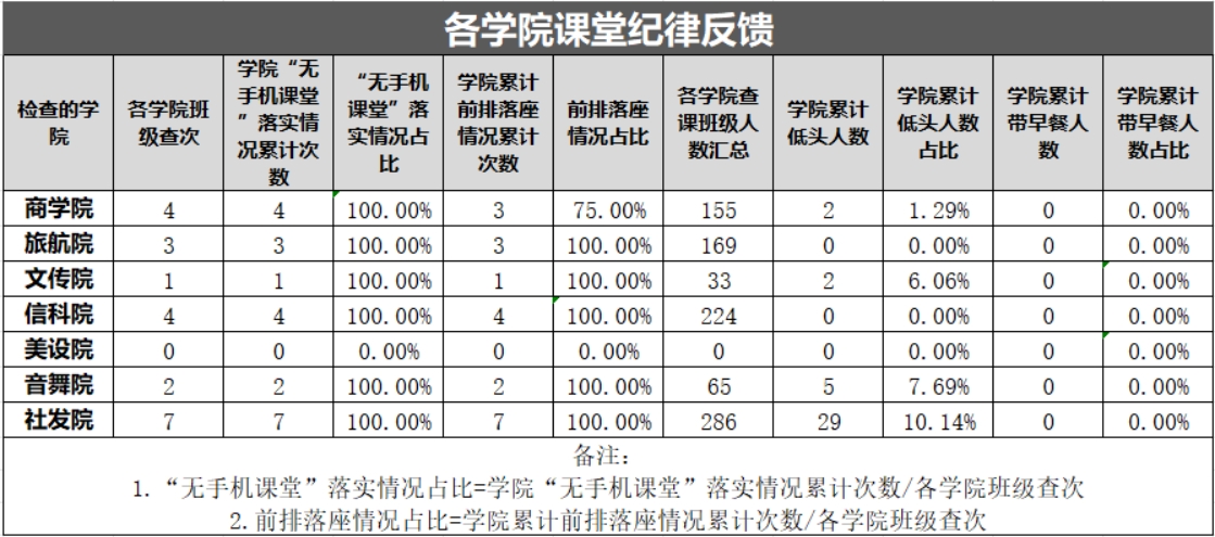 各班级应当高度聚焦文明督查工作。对检查中发现的问题,快速进行纠正,共同打造女院的优良学风!