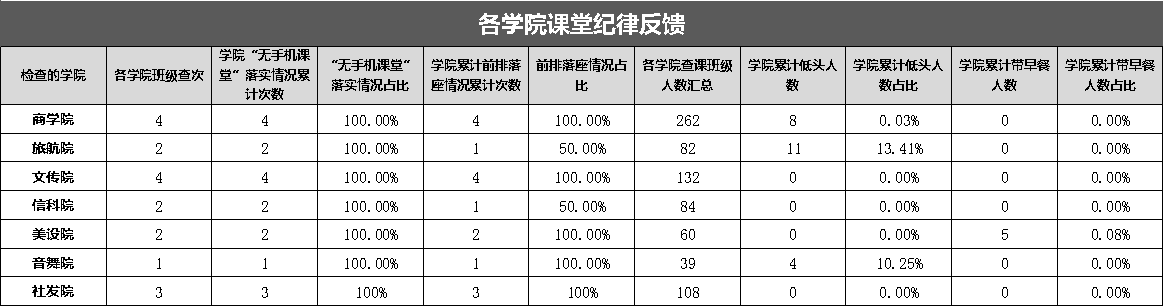 各班级应当高度聚焦文明督查工作。对检查中发现的问题,快速进行纠正,共同打造女院的优良学风!