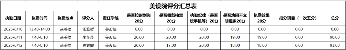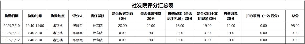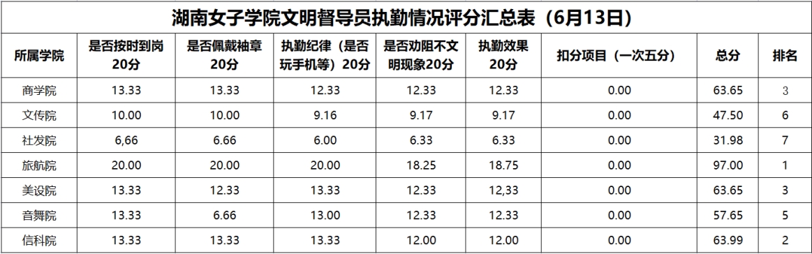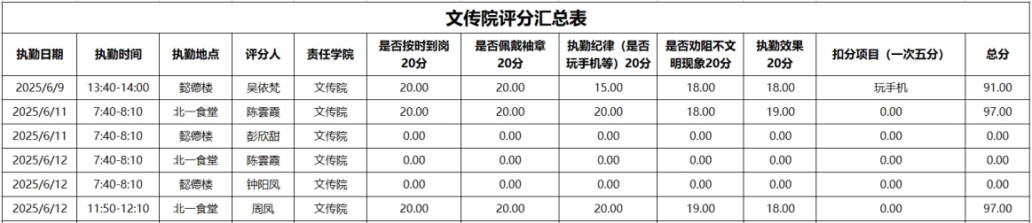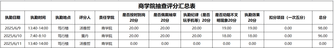 为进一步强化学风建设,引导学生培养正确的学习习惯,切实提升学生的学习积极性,全力构建积极向上的学习氛围与文明有序的校园环境。在学工部的统筹部署下,2025年6月9日至2025年6月13日,大学生自我管理委员会开展了校园文明督查,学风建设督查。现将相关情况通报如下: