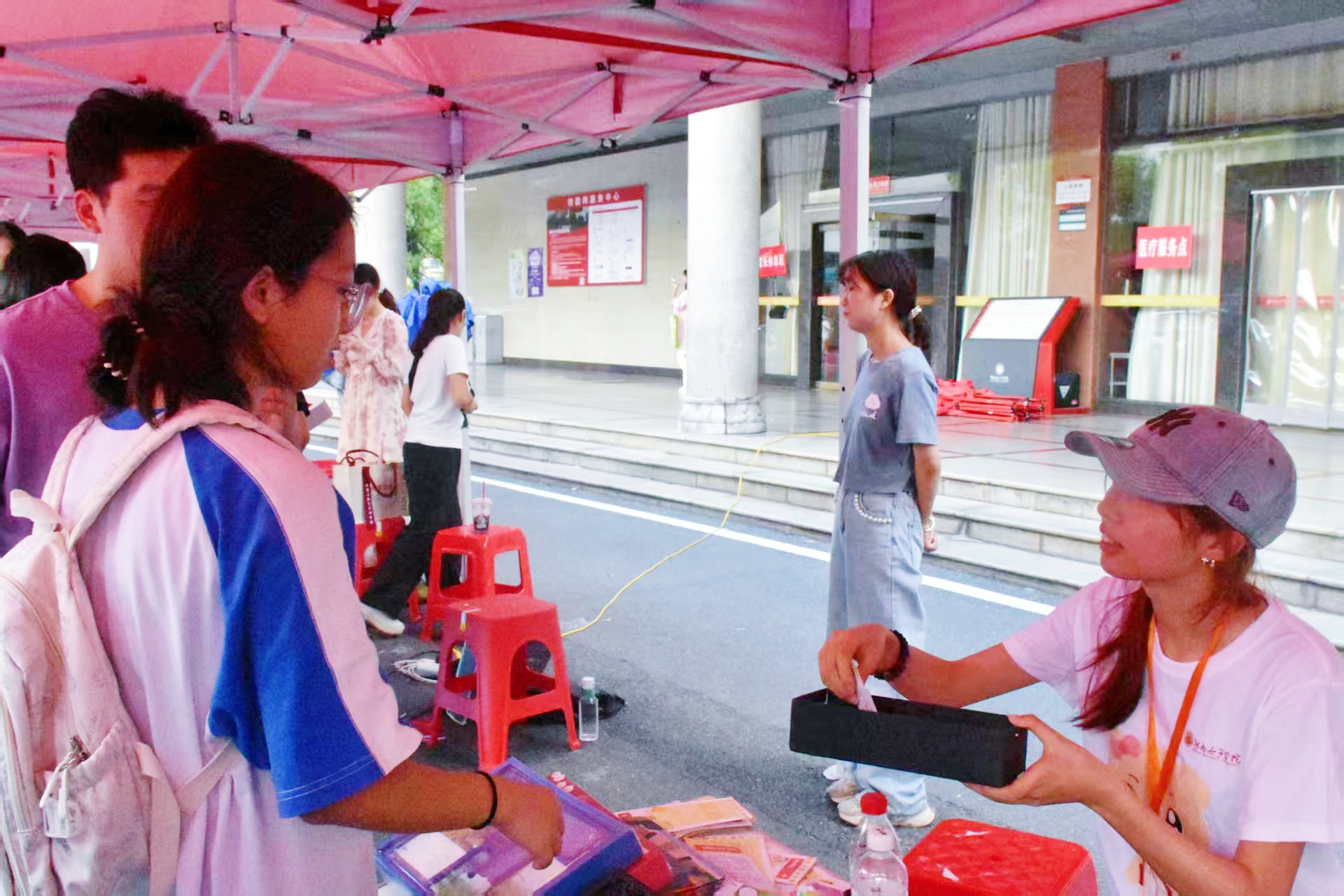 在展台的核心区域,易班学生干部轮班值守,通过发放宣传手册、结合实例讲解等方式,向新生们详细介绍了易班发展中心的组织架构和工作内容。同时,宣传小队携带定制海报在文化广场和食堂入口之间巡回,利用高峰时段增加宣传覆盖面。学生干部们耐心细致地解答着新生们的各类疑问,采写部的周佳妮表示:“我们想传递的不仅是严谨的工作态度,还有温暖的团队氛围。”