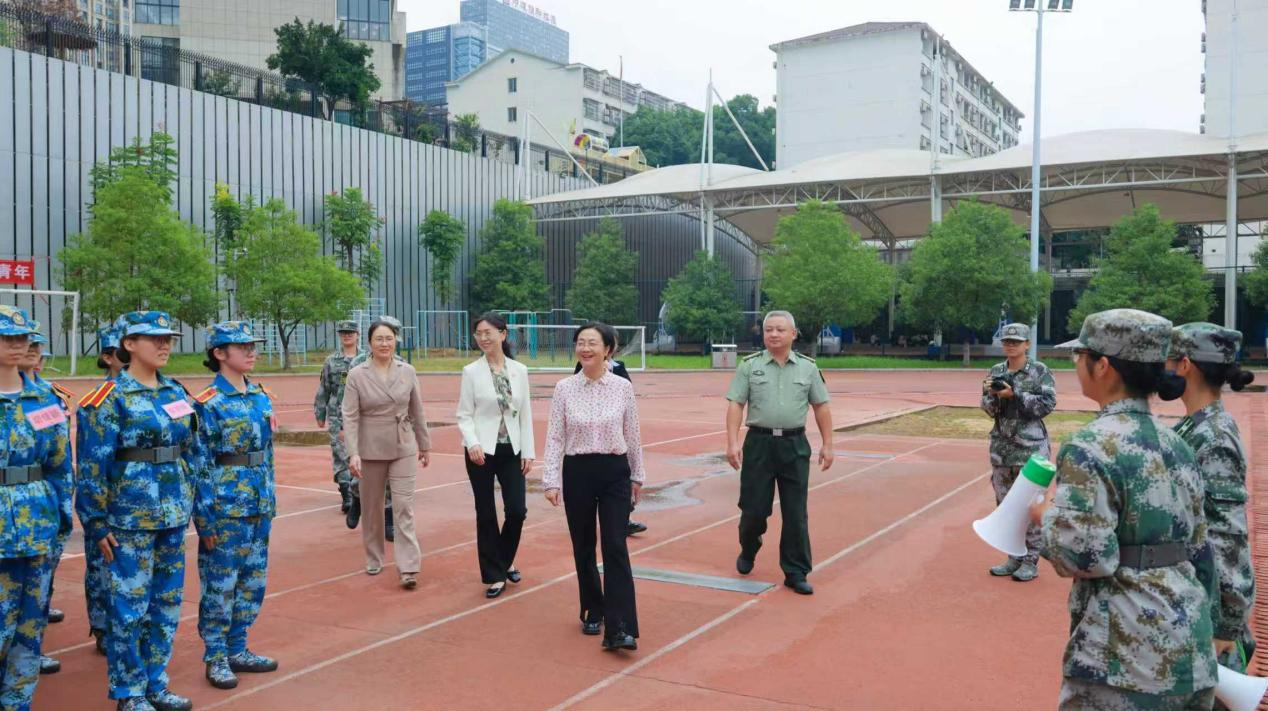 本网讯(学工部 陈 翊 李钰婷)9月下旬的湖南女子学院,天朗气清,训练场上迷彩涌动,2700余名新生们正以饱满的热情投入军训,稍息、立正、齐步走的指令声与整齐的脚步声交织,勾勒出青春最昂扬的模样。9月24日下午,学校党委书记段美娟、校长何旭娟携学生工作部(武装部)负责人,深入军训现场检查指导军训工作,向坚守岗位的带训教官与刻苦训练的新生们致以亲切慰问。