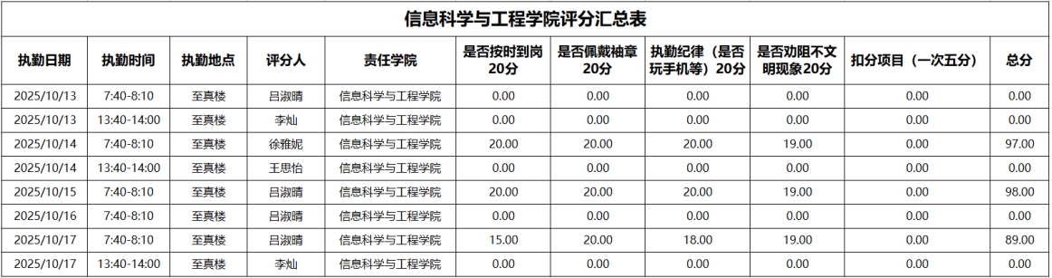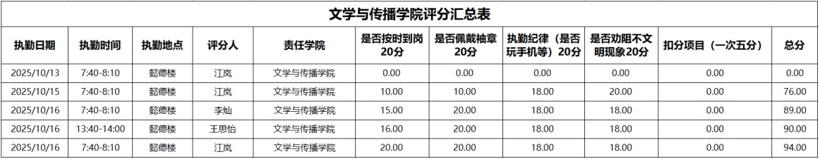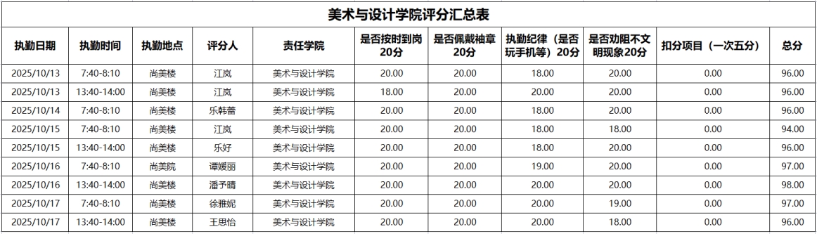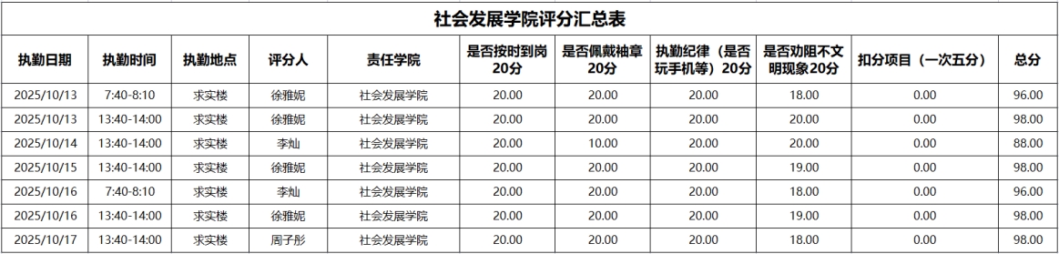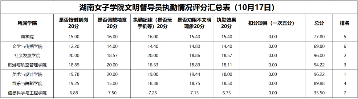 为进一步强化学风建设,引导学生培养正确的学习习惯,切实提升学生的学习积极性,全力构建积极向上的学习氛围与文明有序的校园环境。在学工部的统筹部署下,2025年10月13日至2025年10月17日,大学生自我管理委员会开展了校园文明督查,学风建设督查。现将相关情况通报如下: