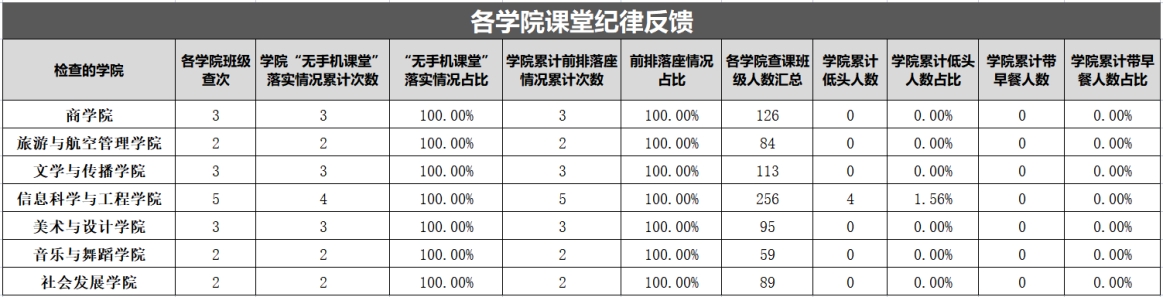 各班级应当高度聚焦文明督查工作。对检查中发现的问题,快速进行纠正,共同打造女院的优良学风!