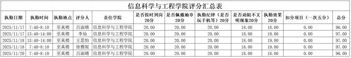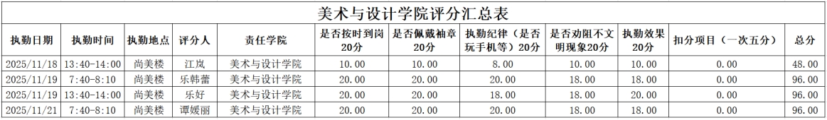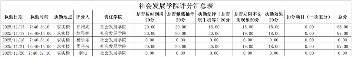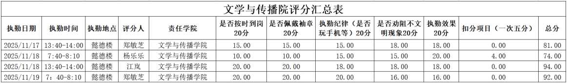 为进一步强化学风建设,引导学生培养正确的学习习惯,切实提升学生的学习积极性,全力构建积极向上的学习氛围与文明有序的校园环境。在学工部的统筹部署下,2025年11月17日至2025年11月21日,大学生自我管理委员会开展了校园文明督查,学风建设督查。现将相关情况通报如下:
