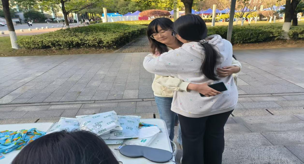 一个拥抱,传递的不只是温度,更是一份被看见、被关怀的安心。活动现场氛围温馨而融洽,许多同学从最初的羞涩观望,到欣然接受、主动回应,甚至加入传递温暖的行列,让善意在校园中不断延续、生长。拥抱之间,人与人之间的距离被悄然拉近,感恩与关怀在不经意间流动开来。