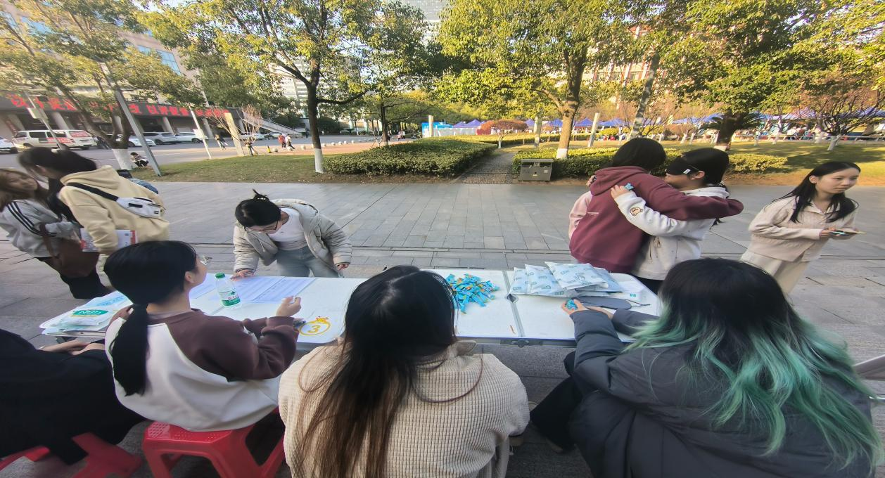 当天下午13:00—18:30,以及晚间20:00—21:30,活动分别在图书馆前、操场和懿德楼前同步开展。心理健康协会的骨干成员们提前到场布置,用真诚的微笑和开放的姿态,主动为过往同学送上温暖的拥抱,并递上精心准备的小礼品。