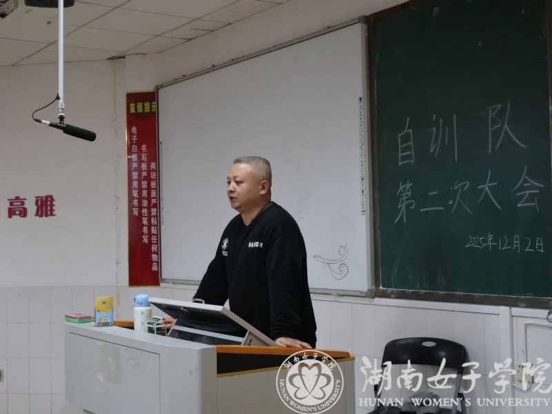 本网讯(学生工作部 陈翊 廖素婧)为全面总结新训阶段工作,系统部署下一阶段训练任务,湖南女子学院第八届学生教官自训队第二次全体大会于2025年12月2日中午在睿智楼308教室举行。自训队指导老师陈翊及全体新老队员参加会议,会议由管理部副部长张佳莹主持。