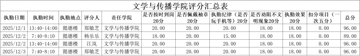 为进一步强化学风建设,引导学生培养正确的学习习惯,切实提升学生的学习积极性,全力构建积极向上的学习氛围与文明有序的校园环境。在学工部的统筹部署下,2025年12月1日至2025年12月5日,大学生自我管理委员会开展了校园文明督查,学风建设督查。现将相关情况通报如下:
