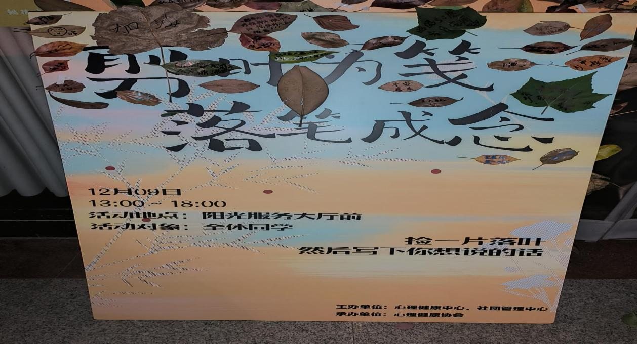 “一叶知秋,一笔寄情。”活动虽已落幕,但那些写在落叶上的真挚话语,仍在校园中悄然流转。中心也将持续探索更多贴近同学、富有温度的活动形式,关注学生心理健康,为营造更加阳光、和谐的校园文化环境不断努力。