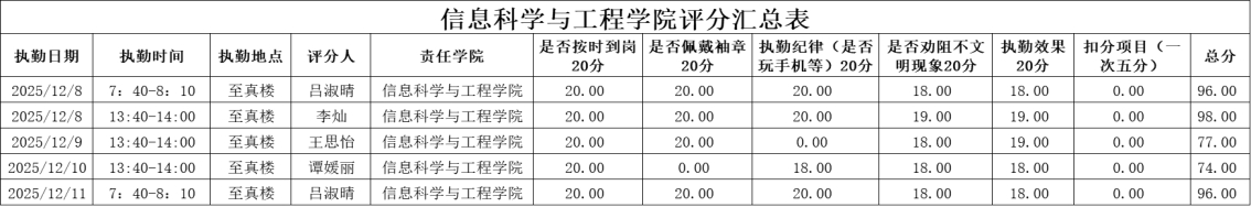 为进一步强化学风建设,引导学生培养正确的学习习惯,切实提升学生的学习积极性,全力构建积极向上的学习氛围与文明有序的校园环境。在学工部的统筹部署下,2025年12月8日至2025年12月12日,大学生自我管理委员会开展了校园文明督查,学风建设督查。现将相关情况通报如下: