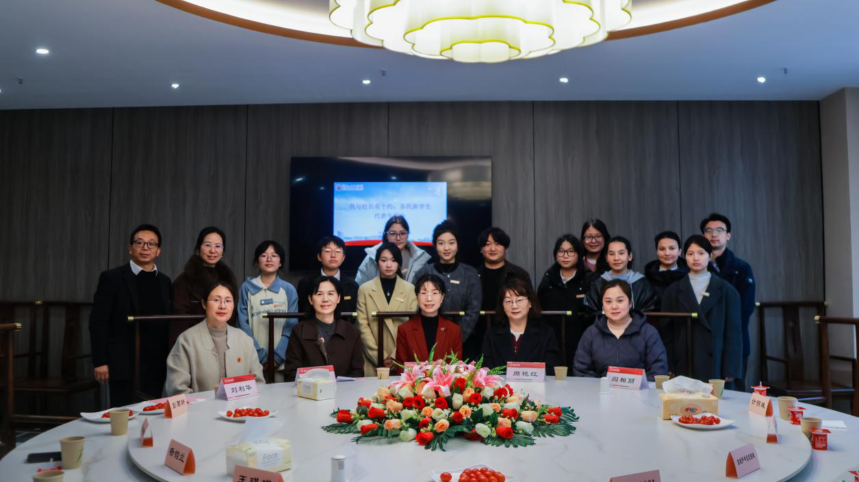 在随后的午餐会环节中,周艳红对“我与校长有个约、各民族学生代表午餐会”活动的开展背景作了说明。来自7个学院10个不同民族的学生代表围绕校园生活、学习困难、专业成长、职业规划等话题与校领导面对面交流。何旭娟认真倾听了学生意见建议,并作指导讲话,她要求各相关职能部门要积极回应学生需求,为学生健康成长发展提供全方位服务,鼓励各民族同学要像石榴籽那样紧紧抱在一起,互帮互助,共同融入学校综合治理和学生发展实践中,推动学校高质量发展,促进学生健康成长成才,铸牢中华民族共同体意识。