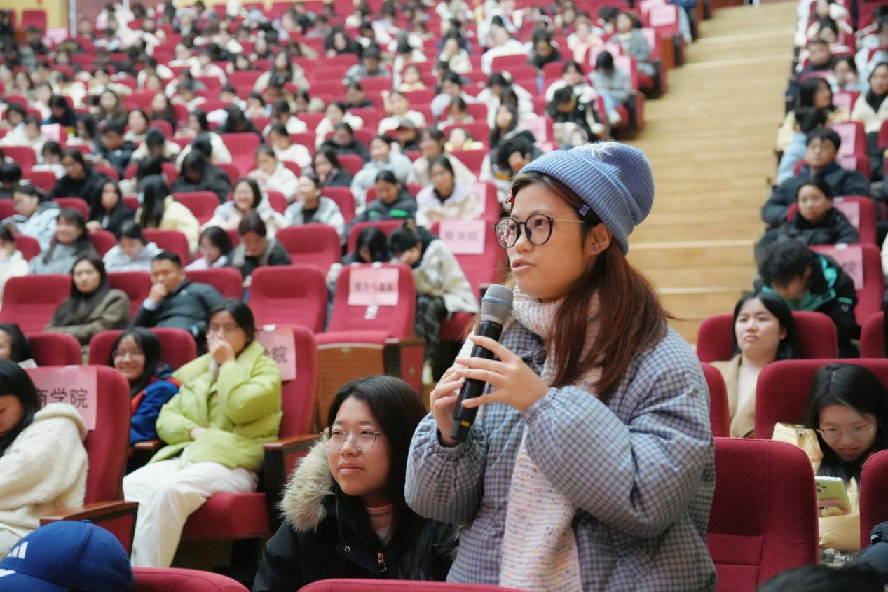 互动环节中,在场学生围绕艺术专业创业方向、大学期间创业准备、创业心态平衡及创业者自律规划等问题踊跃提问,邓志维逐一予以细致解答,现场气氛热烈。