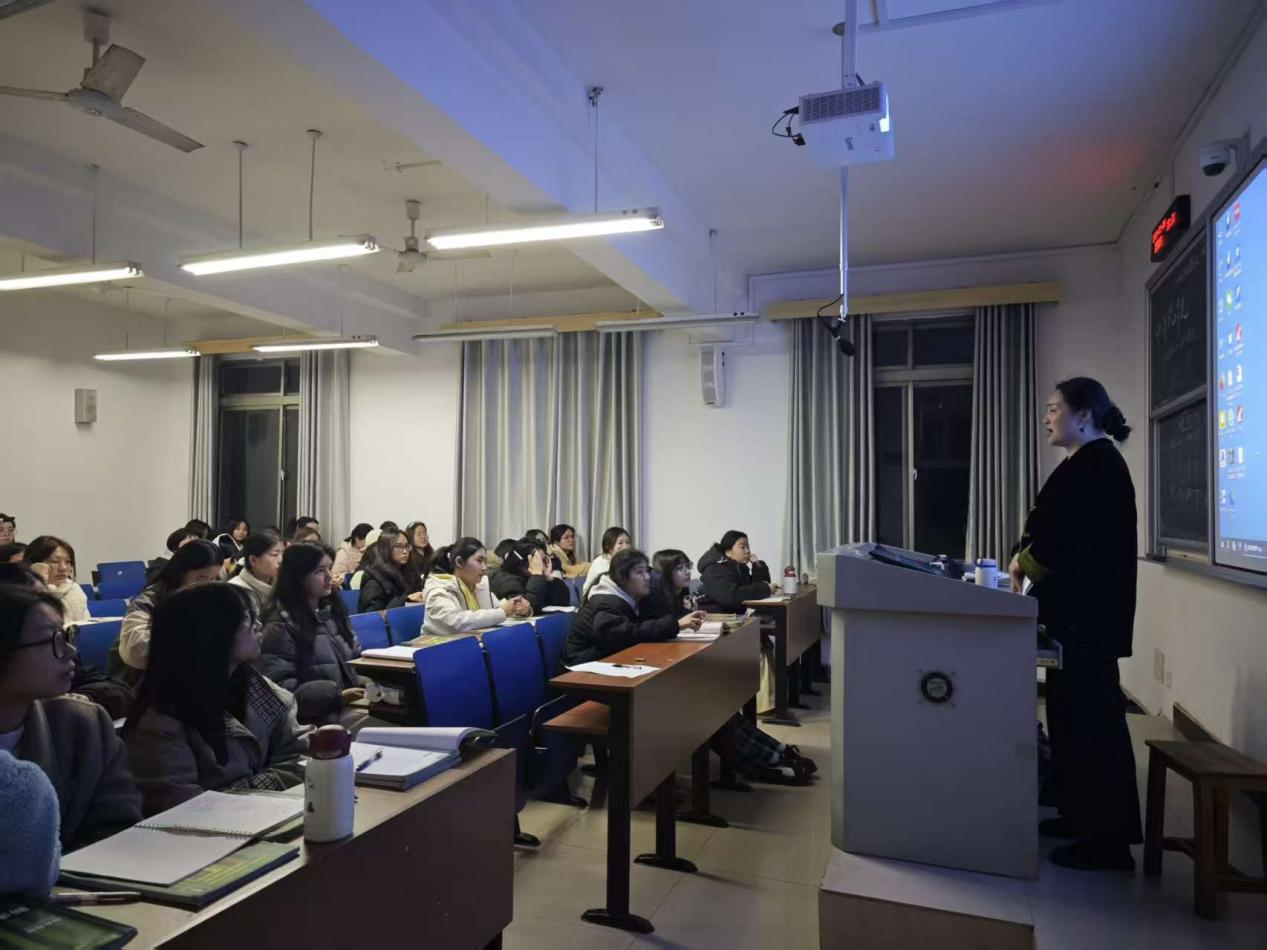本网讯(学工部 古海尔)为帮助大一新生夯实英语基础、掌握学习方法、顺利适应大学阶段英语学习,延续对民族学生的学业关怀与支持,1月8日,学生工作部举办了第五期大学英语分类指导活动。本期活动特别针对2025级新生开展,吸引了70余名各民族同学踊跃参与。文学与传播学院经验丰富的贺芬芬老师再次应邀担任主讲,为新生们带来了一场及时、精准的学业辅导。