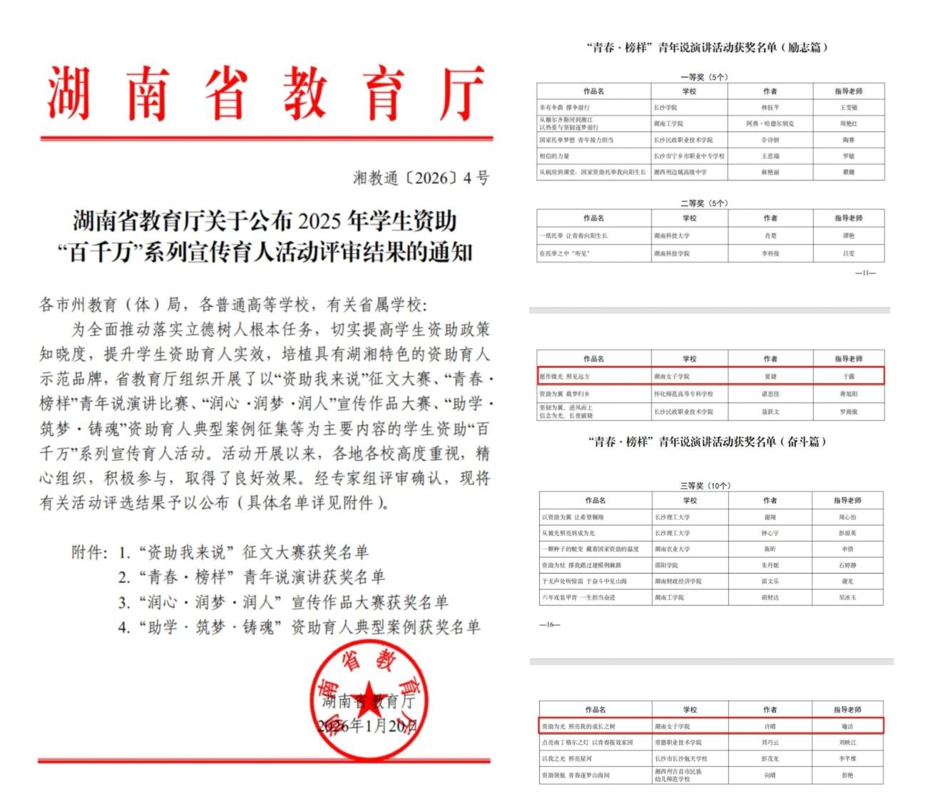 喜报:我校学子在湖南省学生资助“青春·榜样” 演讲决赛中斩获佳绩